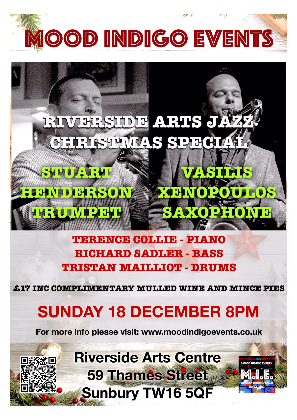 Trumpeter Stuart Henderson and saxophonist Vasilis Xenopoulos team up with the Terence Collie Trio at the Riverside Arts Centre on 18th December at 8pm.
