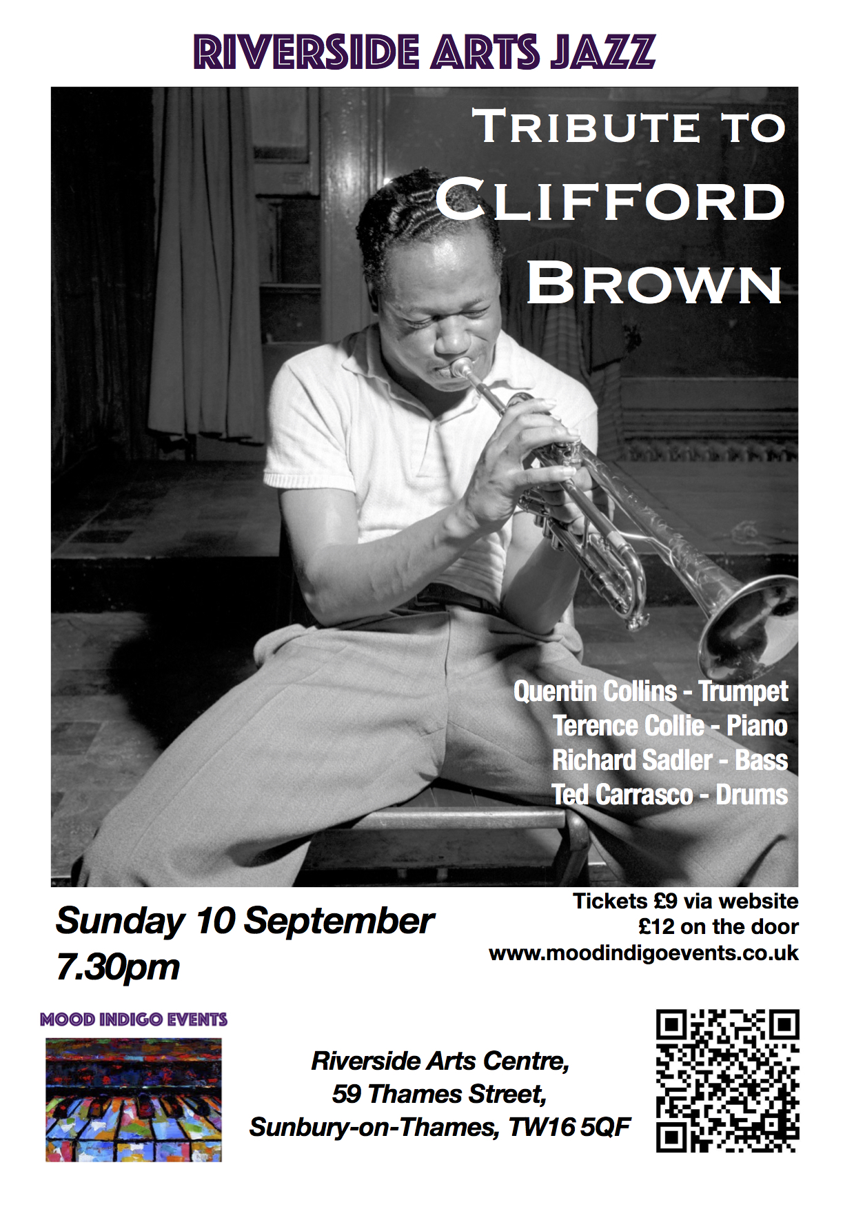 Quentin Collins performs a tribute to Clifford Brown at the Riverside Arts Centre, 59, Thames Street, Sunbury TW16 5QF on Sunday 10th September at 7.30pm