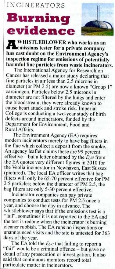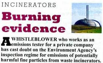 Click here to read a recent Private Eye article giving a whistleblower's account on the monitoring of highly toxic particulate emissions caused by incineration.